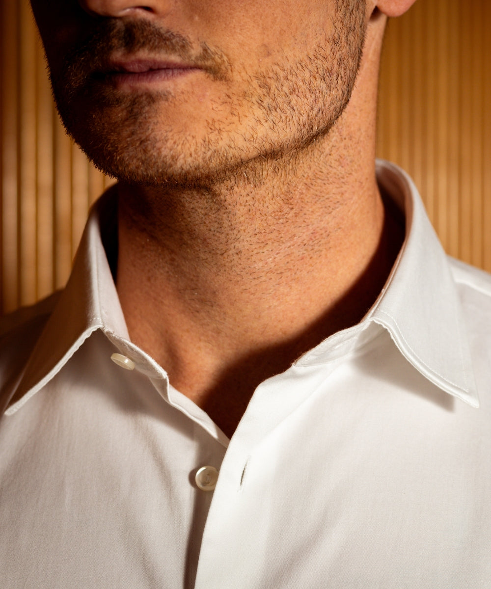 Vi har gjort os umage i forsøget på at lave den perfekte business skjorte. Der er kælet for de klassiske detaljer, materialernes kvalitet er uovertruffen og pasformen burde sidde lige i skabet. Den er strygefri, og kraven sidder perfekt. Og så er den bæredygtigt fremstillet af økologisk bomuld.